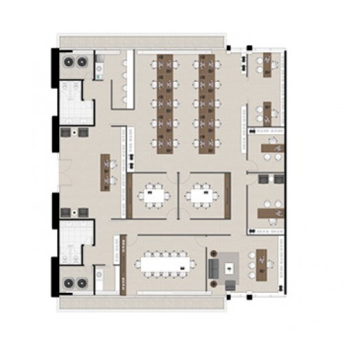 Os pavimentos tipo trazem salas com pé-direito de 3,15 metros, paredes em Dry Wall com tratamento acústico, previsão de piso elevado. As salas são totalmente flexíveis com fácil modulação e baixo custo de manutenção.