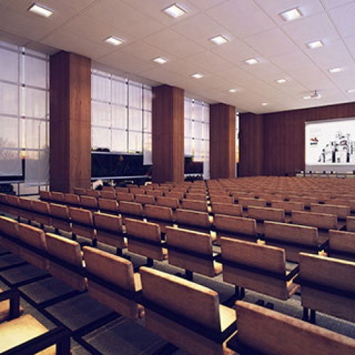 No mezanino do BS DESIGN, está previsto um centro de eventos com sistema pay-per-use composto por 1 auditório com capacidade para 220 pessoas, foyer e salas de reunião moduladas.