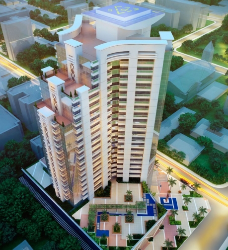 1 torre de 19 andares, com salas de 34,17m² a 50,48m². 09 elevadores sociais com 742 vagas, sendo 650 para automóveis.