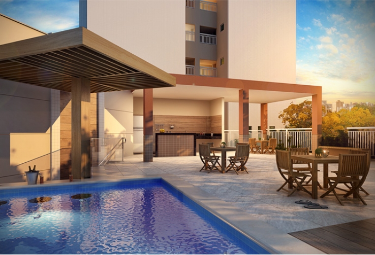 Torre 2: Apartamentos tipo B com metragem de 67,94m² de área privativa - Sala de Estar/Jantar, Varanda/Sacada, Cozinha, Área de