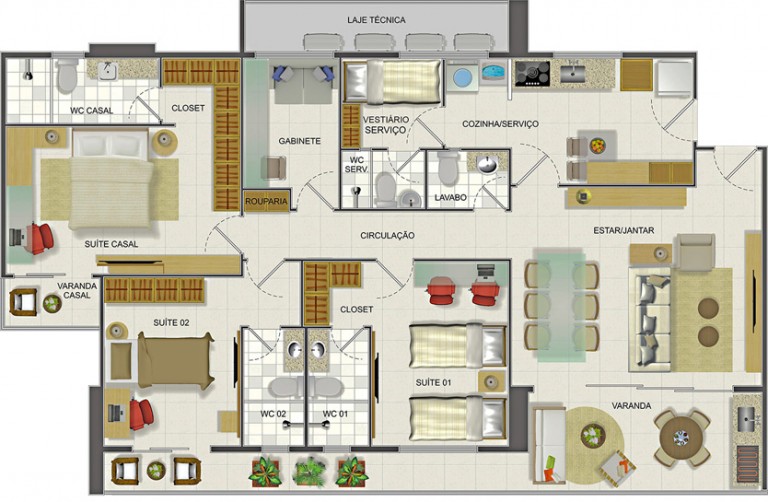 - Laje técnica individualizada para receber os condensadores dos aparelhos splits de ar-condicionado