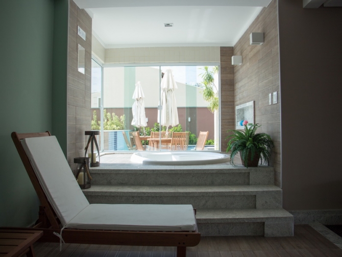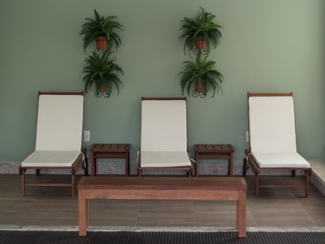 Tipo A – 164,61m²: (Andar Par com Pé Direito Duplo) - (03 Suítes, sendo 01 Master Com Closet) Dependência Completa de Empregada. Sala Com 03 Ambientes (Estar, Jantar e Living), Varanda Integrada a Sala, Cozinha, Área de Serviço, Lavabo, Banheiro da Suíte Master com Chuveiros e Pias Individuais, Banheiro da Suíte Master com Banheira de Hidromassagem, 3 Vagas de Garagem