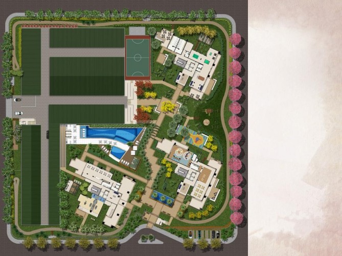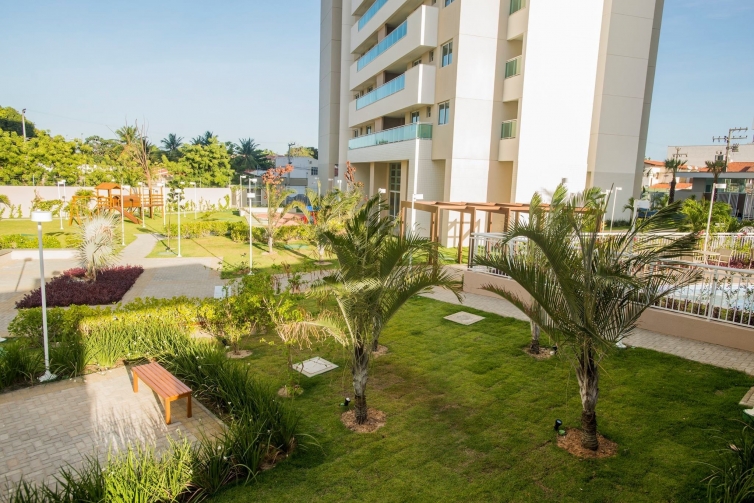 Reaproveitamento de água. Sistema automatizado para irrigação. Louças sanitárias com dispositivos economizadores de água. Dispositivos economizadores de energia elétrica. Madeira utilizada de reflorestamento. Empresa amiga da natureza.