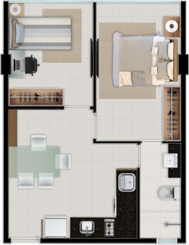 - 56 Unid. de até 37,38m² |1 SUÍTE |1 VAGA PRIVATIVA