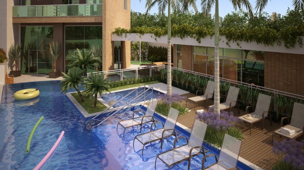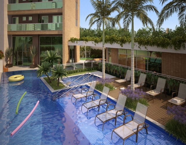 Porte cochere, hall social, salão de festas, deck gourmet com churrasqueira e forno de pizza, fitness, sauna, repouso com deck, deck seco, deck Molhado, piscina adulto com borda infinita, piscina infantil, espiribol, campo gramado, playground, praças e pergolado.
