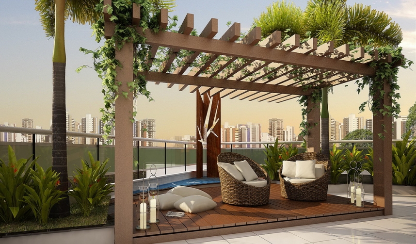 Sinta o bem-estar no Espaço Zen, da praça de convivência. Ambientes que traduzem respeito à natureza.