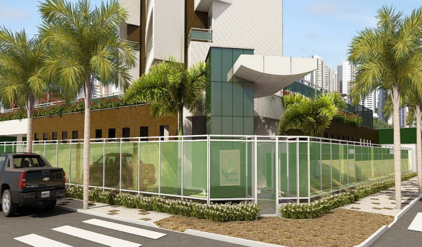 O condomínio RESERVA NATURE é constituído de uma única torre com dois volumes distintos, sobre um embasamento no rés do chão, onde fica parte do estacionamento de veículos do empreendimento e acima, um pilotis elevado com toda a generosa área de lazer e convivência.