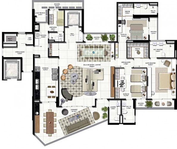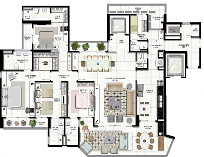 • 3 ou 4 Suítes c/ closet