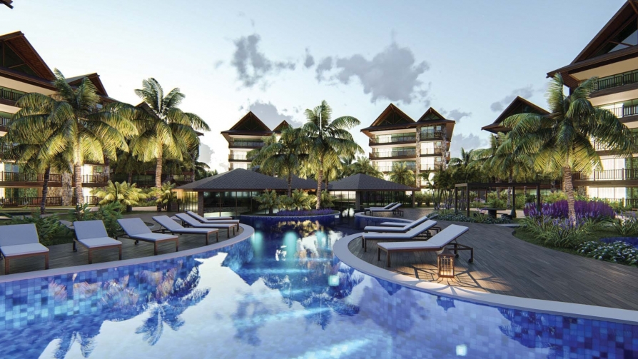 Condomínio exclusivo com apenas 8 bangalôs com 1 apartamento por andar, na beira da praia do Porto das Dunas com condições de pagamento durante a obra.
